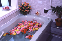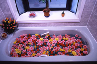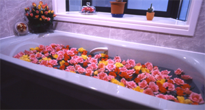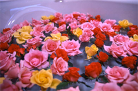 ホームページつくりのお手伝いをしている新潟県新津市のバラ栽培農家「しだばら園」さんのバラを使って「薔薇風呂」の撮影をしてみました。使ったバラは相当量になったと思います。200〜300本くらいはあったかも。浴槽に入れたのは用意していた半分にもならなかったのではないでしょうか。