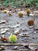 頂上まではとにかく体力維持をメインにひたすら足を前に出す。下山は回りを見渡しながらおりました。 往路では気がつかなかったけれどまだ青い栗の実と宝珠山の住人の餌になってしまったのか、空っぽになったイガグリ向けてシャッターを押しました。