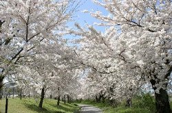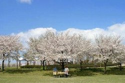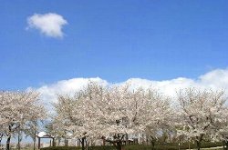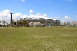 ちょっと遅くて葉っぱが目立ち始めてしまったソメイヨシノだけど、快晴の青空と芝生の緑にマッチしていた。ビッグスワンも次のホーム戦にワクワクしているように見えた。 (2005/04)