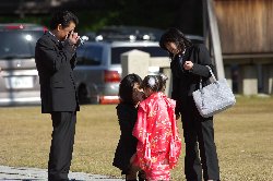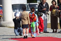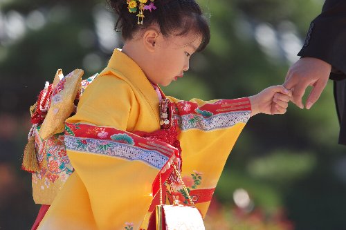 前日から朝方まで続いた荒天気もお昼前には嘘のように晴れ渡った新潟市内。護国神社境内にはたくさんの真新しい晴れ着に包まれた子供達とそれを温かく見守る父母そして祖父母と共に、ここまで無事に育ったことを感謝し、そしてこれからも健やかに育ってくれることを願いつつ・・・・祈りを捧げる。 子供はしっかりと親の手を握り親の後姿を見て育っていきます。