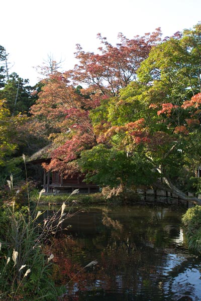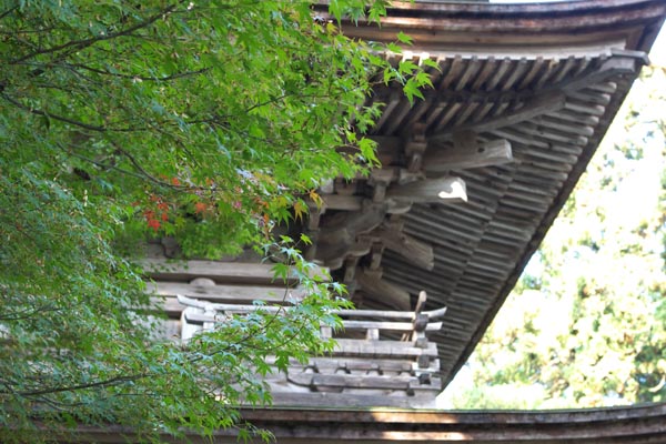 10月下旬に初秋の乙宝寺へ出かけてきました。目的は「三重塔と紅葉」と本堂裏の散策路に建立されている西国三十三観音の石塔を撮るため。 さすがに紅葉にはまだ早かったのですが、山門の右側に広がる弁天堂の木々は紅く色づいていて弁天堂の色合いとのコントラストがなかなかでした。池の前でお孫さんとおばあさんが遊んでいましたので、ちょっと邪魔しますと断りを入れて弁天堂の写真を撮ろうとしたら、「三重塔も撮っていきなせ」と声を掛けていただきました。