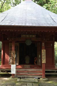 せっかくなので観音堂にお参りをしようと歩いていくと、お堂でお参りする人の姿が。失礼ながら後ろ姿をパチリ。